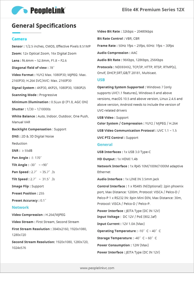 PeopleLink Elite 4K Premium12x Conferencing Camera